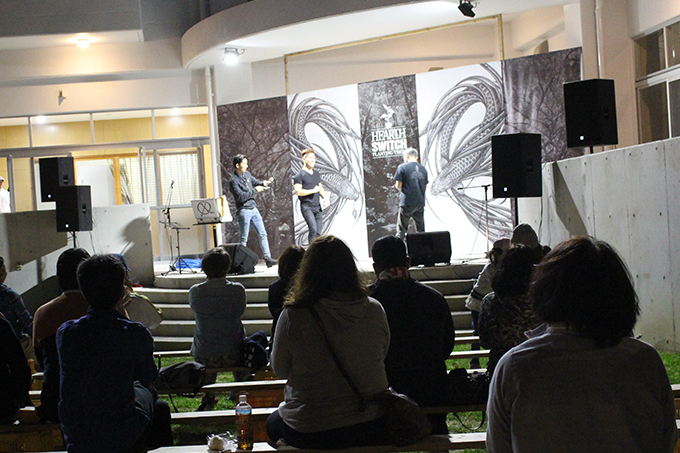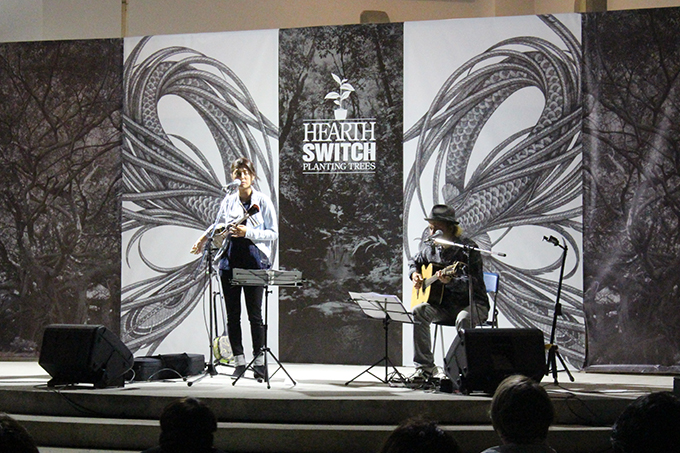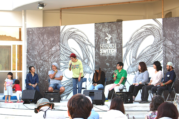 やんばるの森に国頭村の特産のからぎの木を参加者皆で300本を植え、植樹後は地元の名物の猪鍋や、ハイ鶏(一般的に食べられるブロイラーとは違う採卵期間を終えて鶏舎から出される雌鶏のことです。)山菜てんぷら等が振る舞われ、地元ではたらく様々な人たちのディスカッション、MASA MAGIC(マサ・マジック)さんのマジックショー、民謡歌手の上間綾乃さんのライブ、ネビアのCMでおなじみのJUONさんのライブ等が行われました。